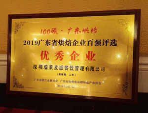 2019年获得“2019广东省烘焙企业百强评选优秀企业“荣誉称号